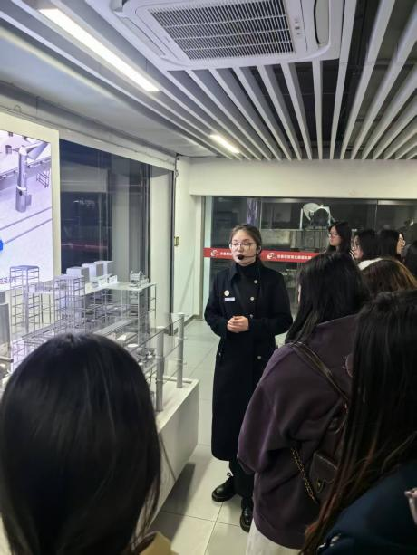 随后,同学们沿着生产线先后参观了酿酒车间、储酒仓库与灌装车间。讲解员介绍了不同年份酒体的储存特点与风味变化,同学们对白酒的陈化过程有了科学认知。在现代化灌装车间,自动化生产线高效运转,从洗瓶、灌装、封口到贴标、装箱,全程精准有序,同学们切实感受到现代科技为传统酒业带来的生产效率提升,也对“传统工艺+现代科技”的融合发展模式有了新的理解。