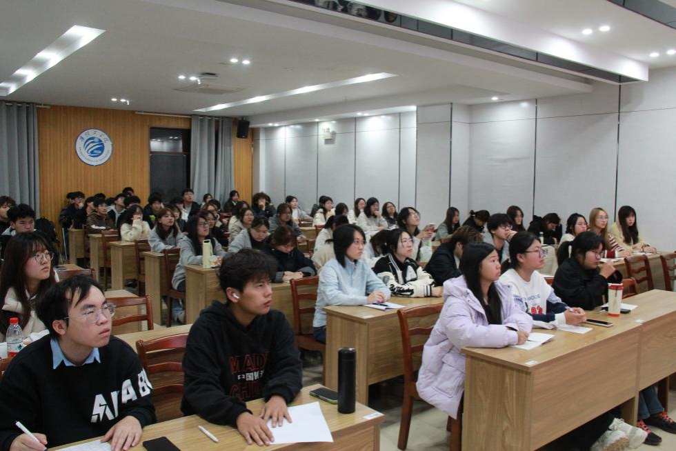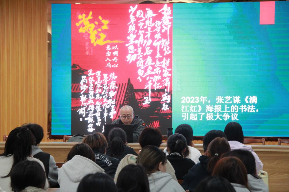 11月11日晚,设计艺术学院在萧湖校区报告厅举办2025年“发现设计十二讲”系列讲座之“海报设计中的书法元素漫谈”。此次讲座由学院程渤教授主讲,2025级同学通过线上线下相结合的方式参会。