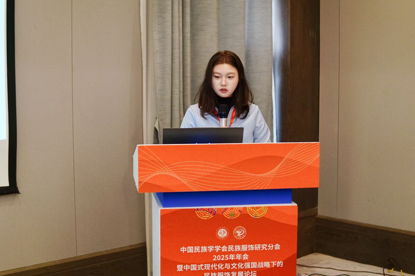 2025年11月15日,设计艺术学院王忆雯导师团队2025级硕士研究生葛玉晨、高静娴同学参加“中国民族学学会民族服饰研究分会2025年年会”,在会议上分别作《基于AIGC范式的苏绣造物美学在民族服装中的设计研究》与《二十四节气元素符号在四合如意云肩中的应用设计研究》的汇报。